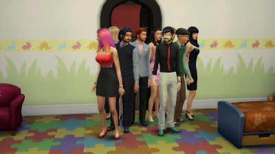 Julia: In this competition, each of you will have to correctly identify 12 CGI children with their correct male and female housemate parents. Each of the screens around the room will show one child, so you must go from screen to screen and lock in what you believe to be the correct parents.